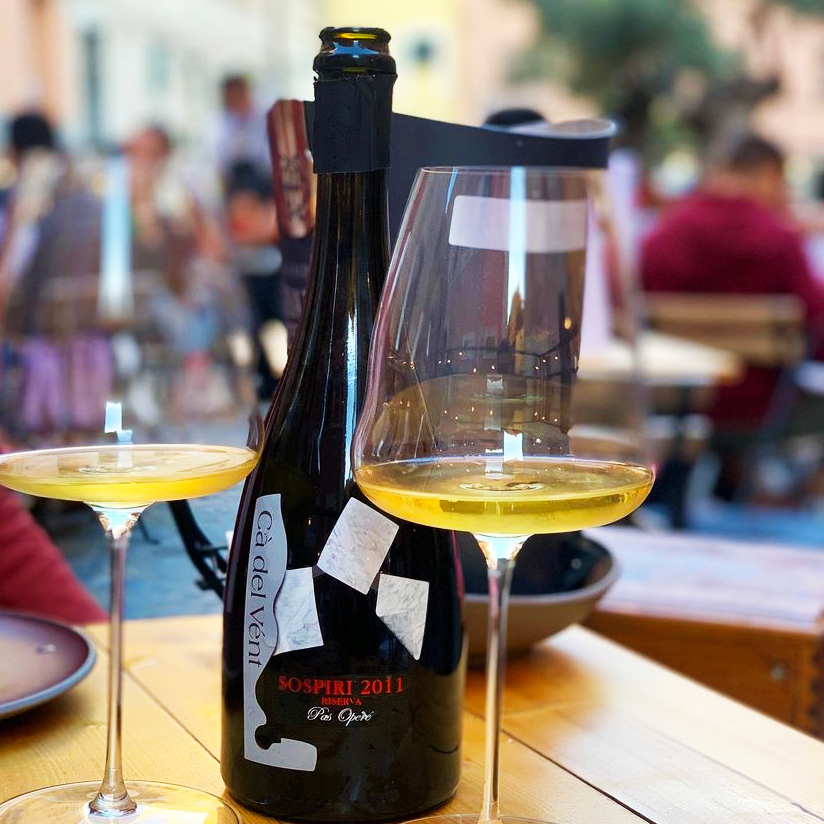 Sospiri è un progetto ottenuto assemblando le sperimentazioni di cantina dell’annata. Mosto fiore estratto dopo macerazione in pressa dello Chardonnay. Decantazione per gravità, fermentazione da lieviti indigeni, quindi sosta di 7 mesi in barrique. Malolattica spontanea e completa. Niente collaggi, stabilizzazioni e filtrazioni. Presa di spuma con zucchero d’uva e affinamento in bottiglia sur lattes per almeno 100 mesi. Tutta la potenza evolutiva di un'uva e la profondità conferita da una sosta sui lieviti senza fine... ecco un vino oltre l'immaginazione.